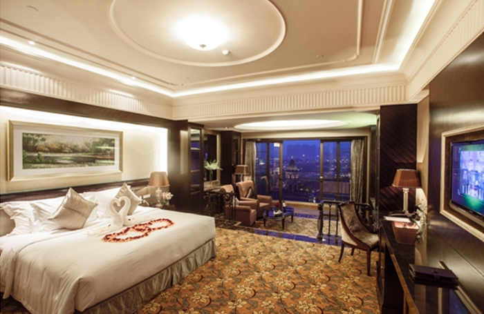 酒店以欧式城堡为设计蓝本,将欧洲宫廷风格完美融合到汾河景畔。酒店配备352间不同设计风格的客房,拥有1间1,600平米国际会议中心,3间以星座命名的多功能会议厅,1间真粤中餐厅,1间意咖啡自助西餐厅,1个大堂吧。康体中心拥有健身室、室内羽毛球场、5间乒乓球室、2间英式桌球室、1间美式桌球室、1个室内恒温游泳池、1间舞蹈室等设施。